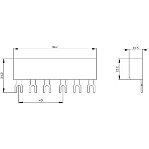 3-фазна шина, модульна відстань – 45мм, для 2-х автоматичних вимикачів