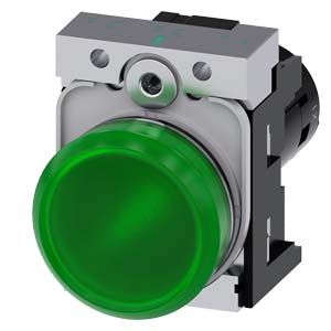 Индикаторная лампа, компактн.,22 мм, кругл., металл, цвет: зеленый, линза, гладкая, сдержателем, рабочее напряжение электрической сети 24 В AC/DC, винтовой зажим